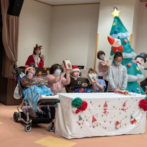 点灯のセレモニーでは、代表の3名の入院患者さんが特製スイッチを押して、イルミネーションを点灯させました。
